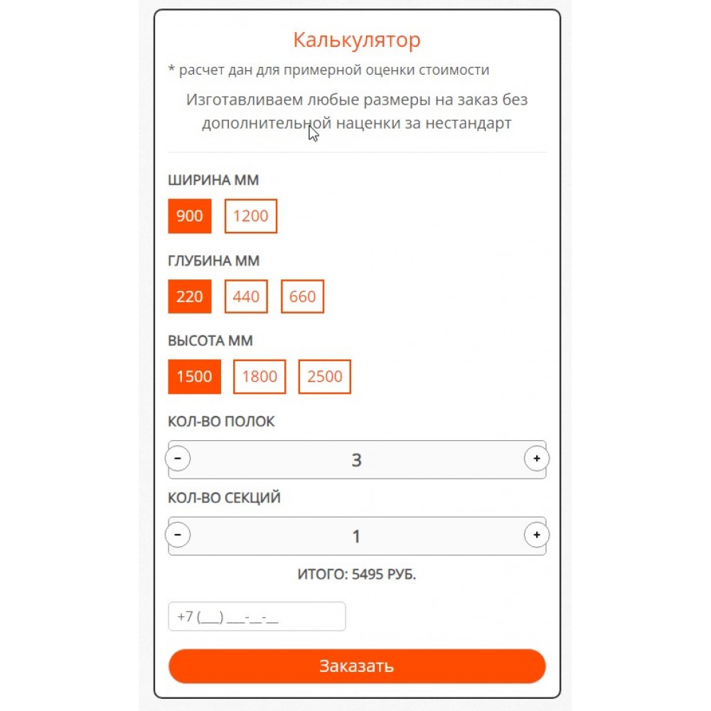 Модуль "Калькулятор стеллажей" от веб-студии Максвебсайт г. Верхняя Тура