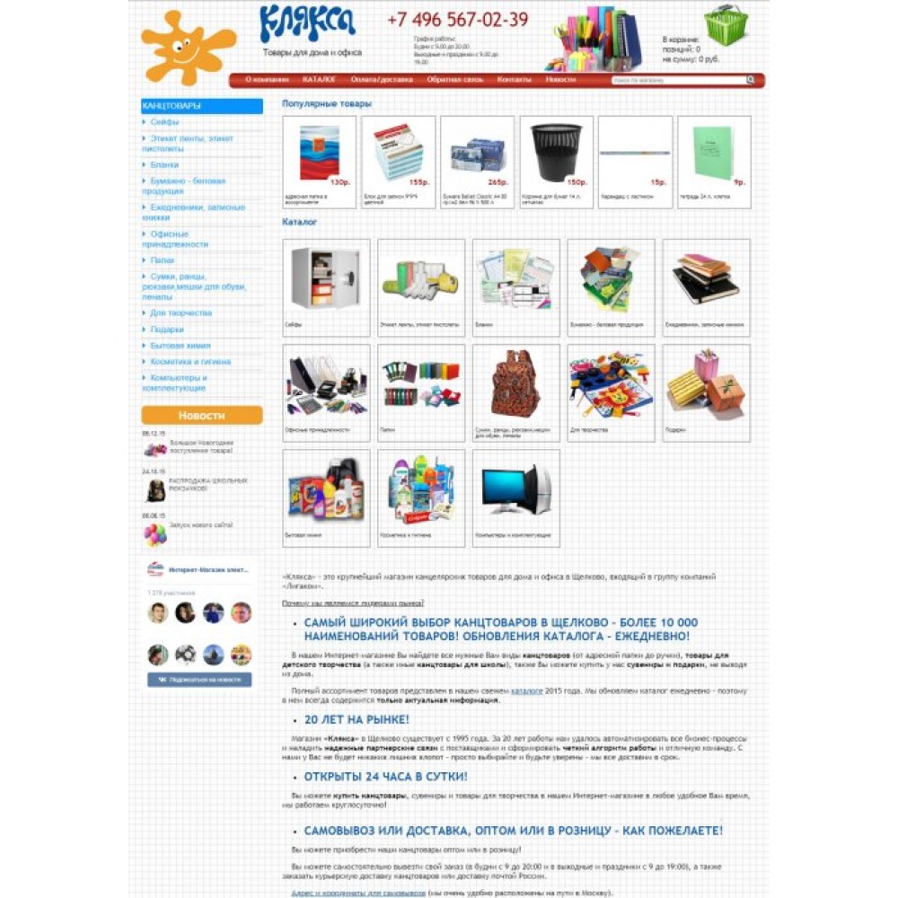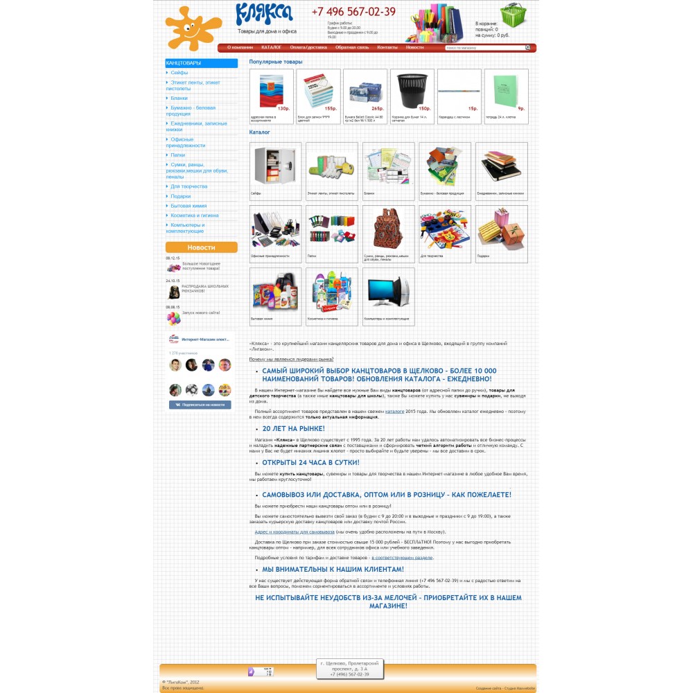 Интернет-магазин канцелярских товаров Клякса от веб-студии Максвебсайт г. Верхняя Тура