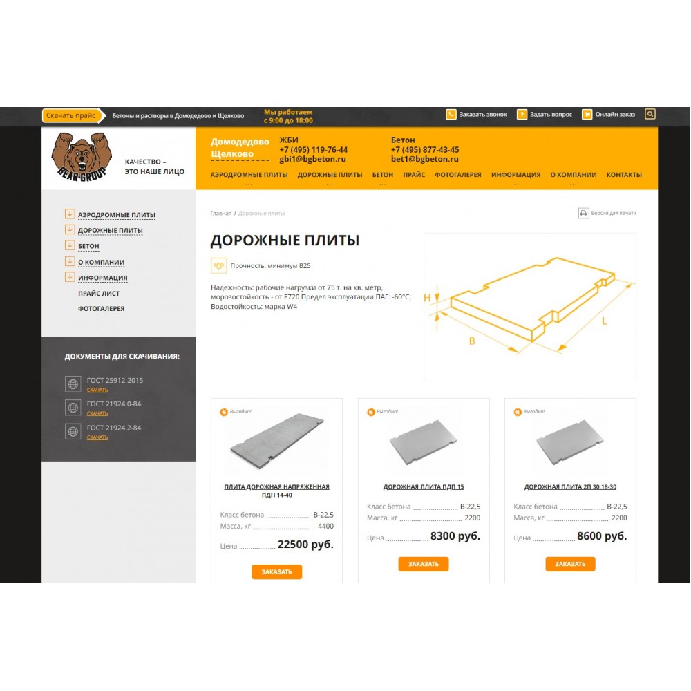 Интернет-магазин по продаже изделий ЖБИ, авиационных и дорожных плит.