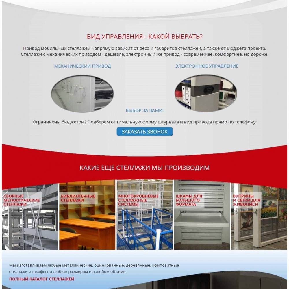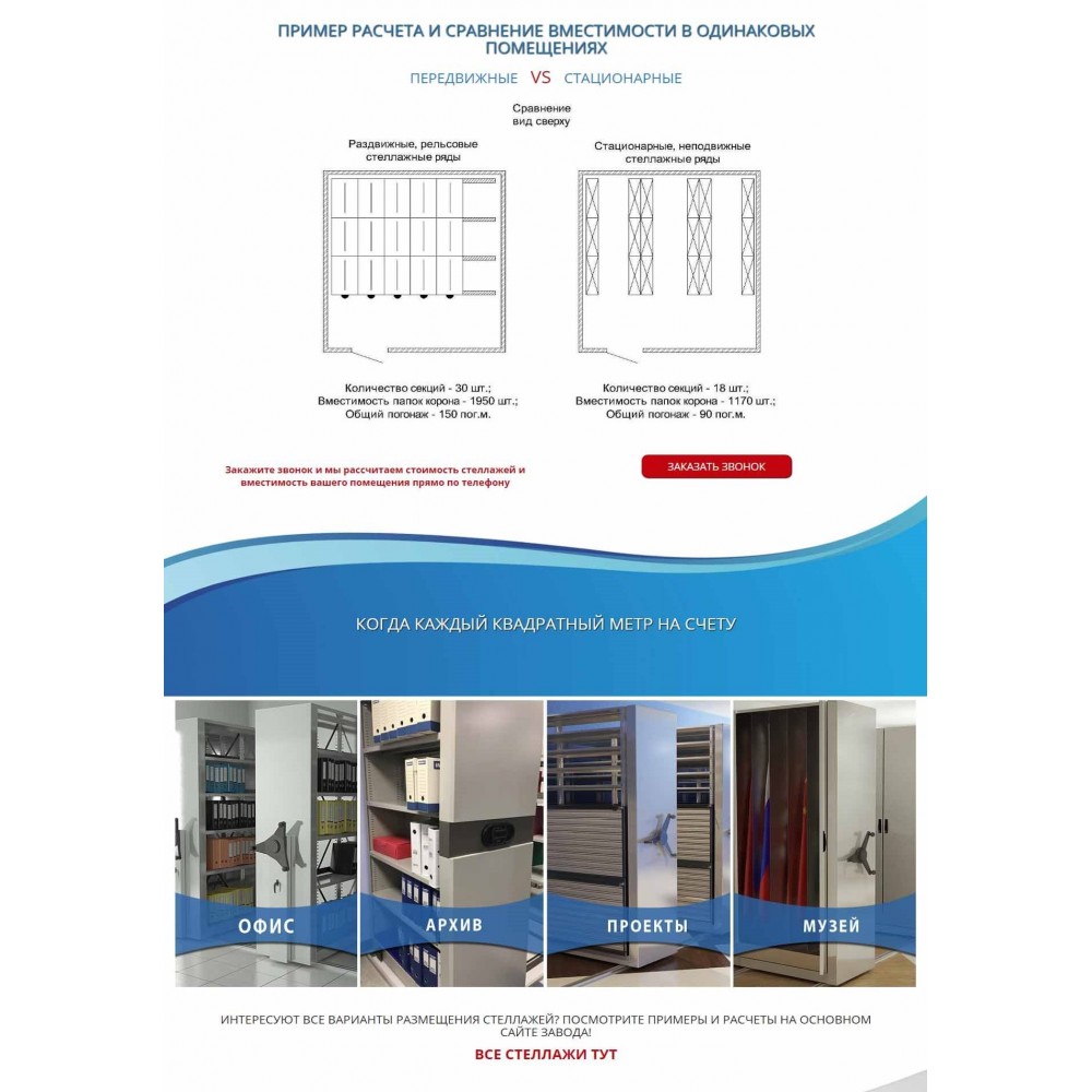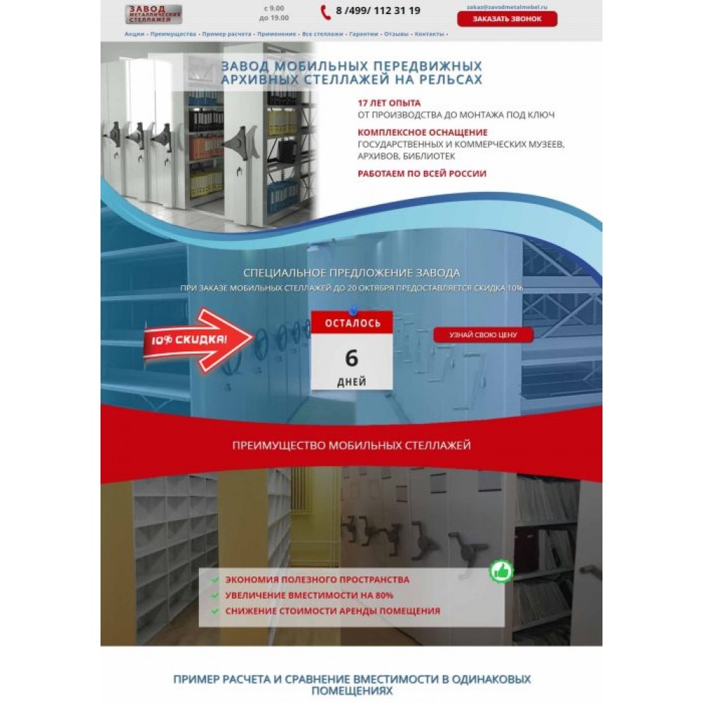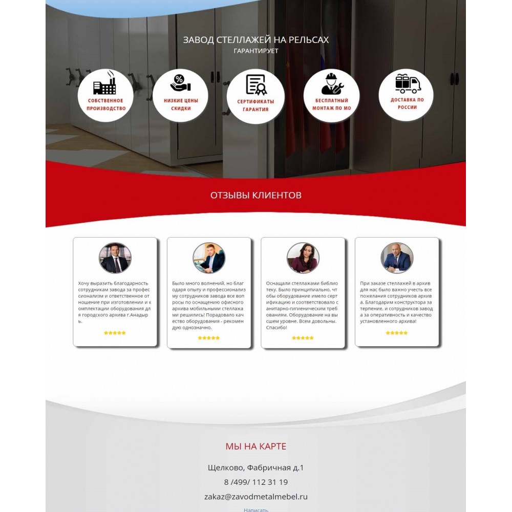 Рекламная страница (лендинг) завода мобильных стеллажей от веб-студии Максвебсайт г. Верхняя Тура