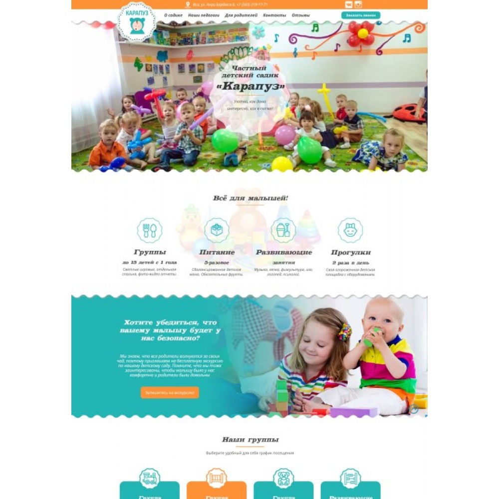 Рекламный сайт частного детского сада Карапуз от веб-студии Максвебсайт г. Верхняя Тура