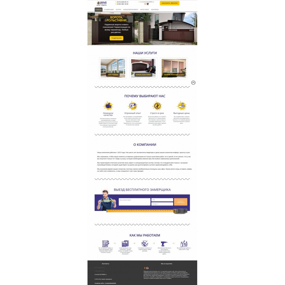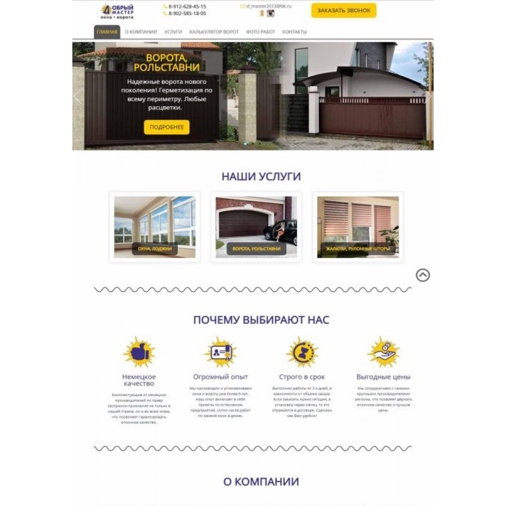 Сайт каталог услуг компании по установке окон и ворот г.Ревда от веб-студии Максвебсайт г. Верхняя Тура