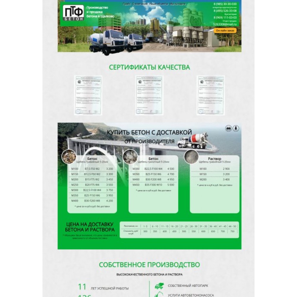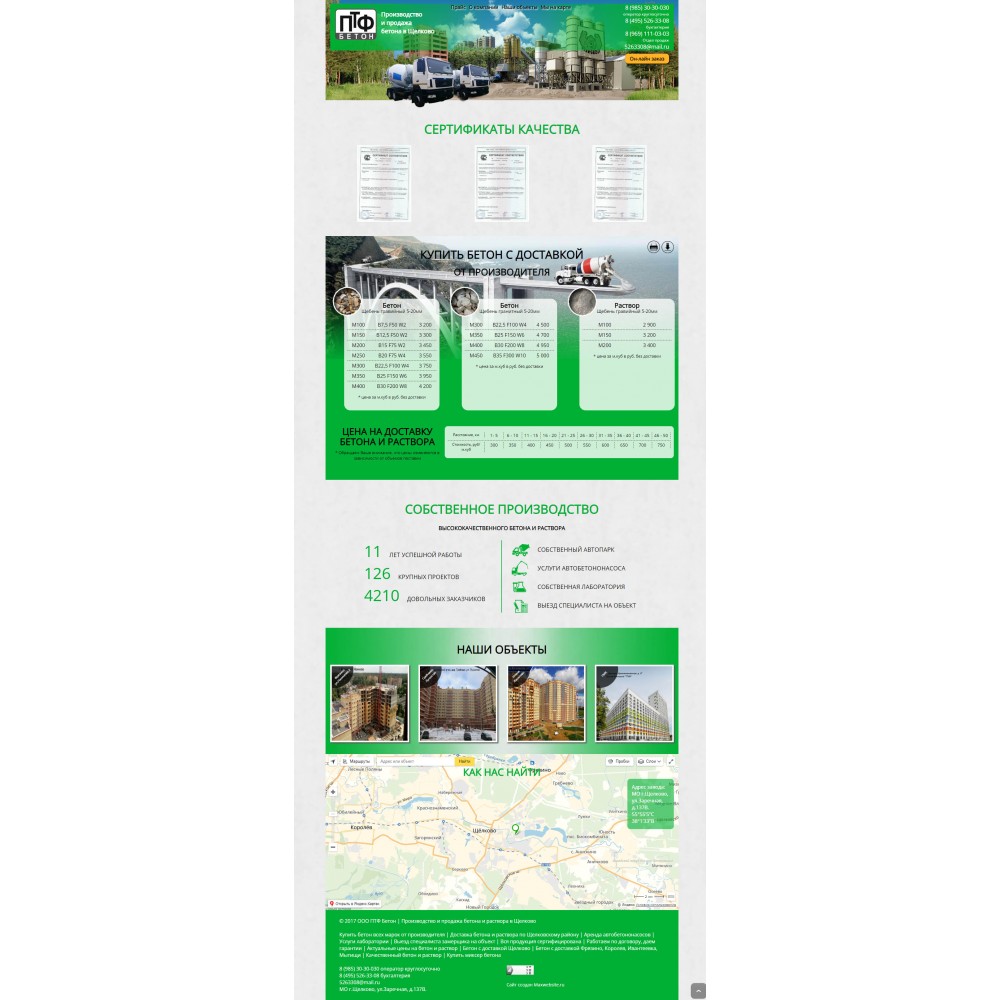 Сайт одностраничник завода по производству бетона от веб-студии Максвебсайт г. Верхняя Тура