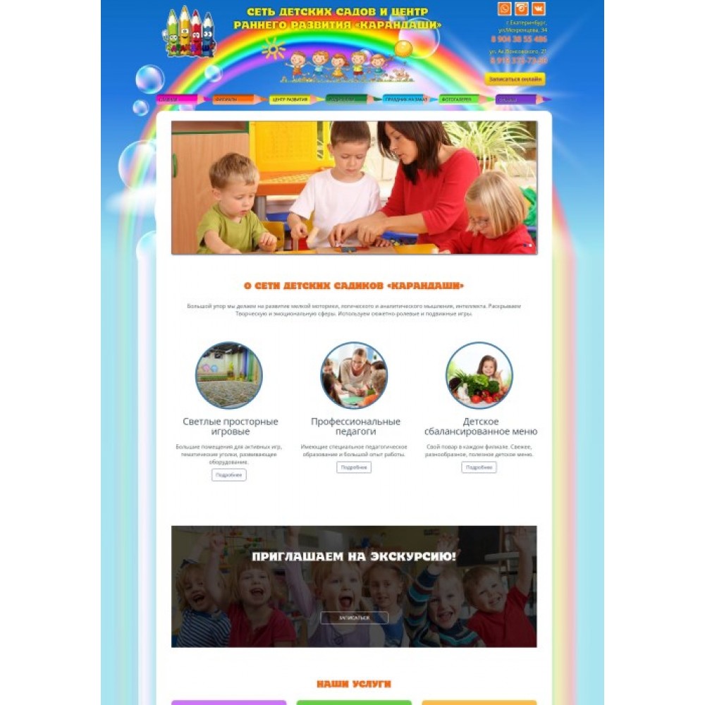 Сайт сети частных детских садиков Карандаши от веб-студии Максвебсайт г. Верхняя Тура